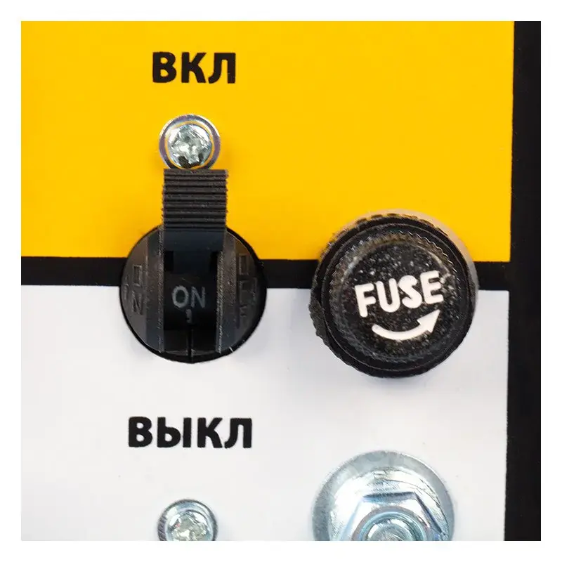 Оборудование подключается к генератору при помощи двух розеток на 230 В, расположенных на панели управления. Модель способна питать инструменты суммарной мощностью до 2 кВт. Здесь также расположен вольтметр, который позволит отслеживать текущее рабочее напряжение.
