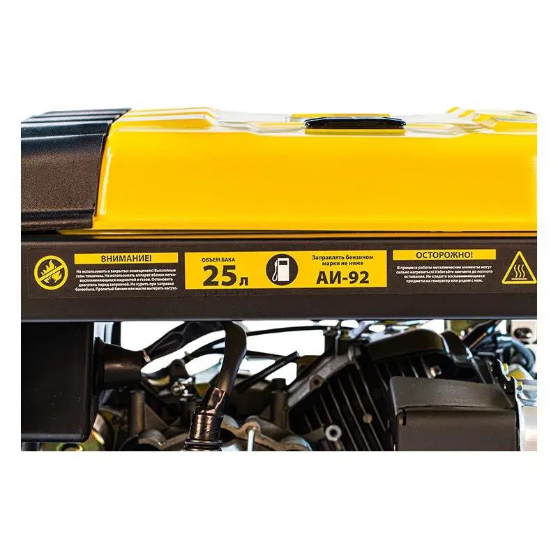На электростанцию установлен двигатель DENZEL LONG LIFE. Он имеет стальной коленвал и чугунную гильзу цилиндра. Это положительно влияет на надежность и срок службы агрегата. Альтернатор имеет медную обмотку. По сравнению с алюминиевыми аналогами, она быстрее проводит ток и при этом меньше нагревается. Это особенно важно в момент больших нагрузок, например при подключении новых приборов с высокими пусковыми токами.