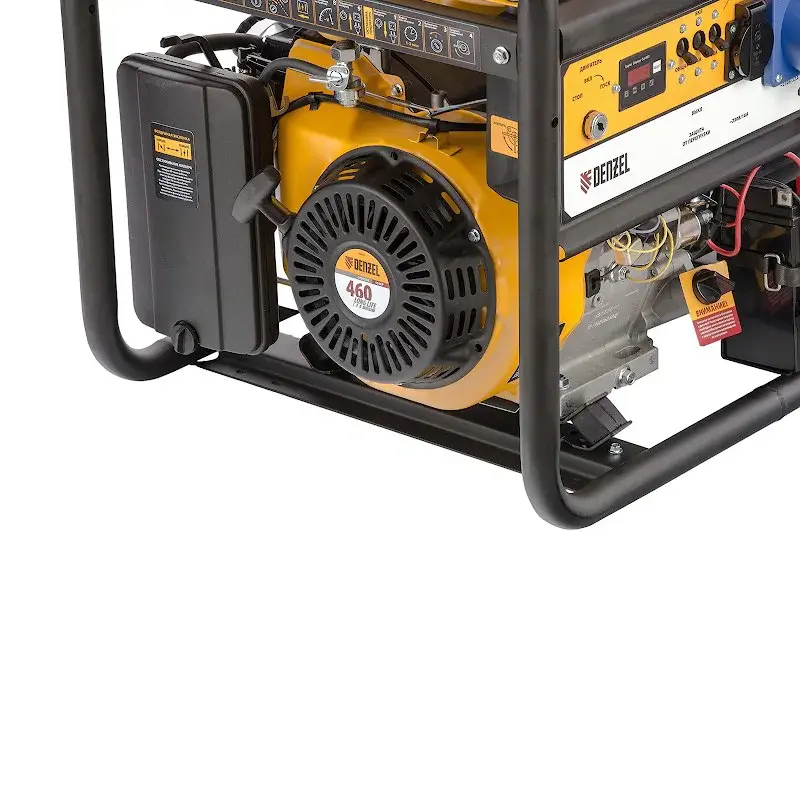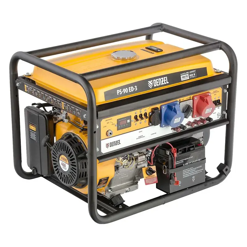 Бензиновый генератор DENZEL PS 90 ED-3 вырабатывает как 1-фазный, так и 3-фазный электрический ток. Работает от 4-тактного двигателя и выдает максимальную мощность 9 кВт в режиме 380В. Модель пригодится для резервного питания загородного дома, или для использования на строительной площадке, в мастерской, на мелком производстве и в автосервисе - там, где нет доступа к энергосети.