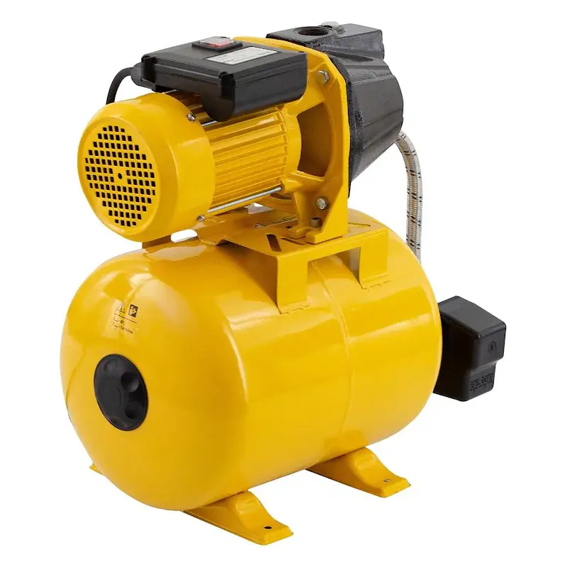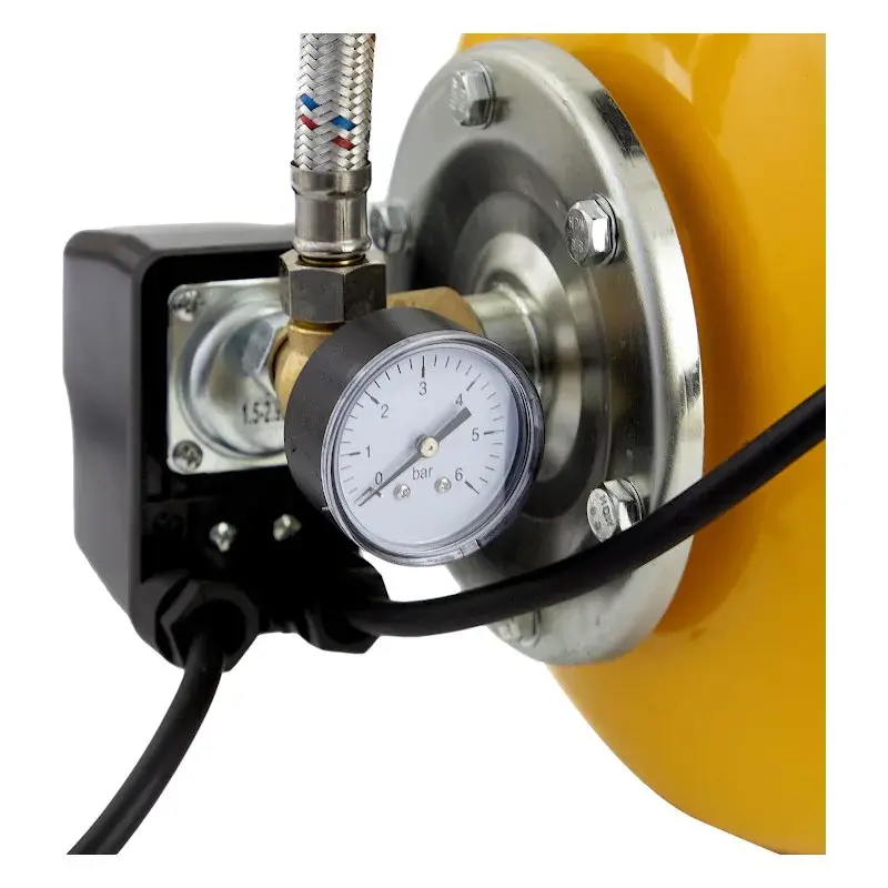 Реле давления обеспечивает работу насосной станции в автоматическом режиме. После заполнения напорного бака и достижения значения 3 атмосферы насос выключается, а затем снова включается при падении давления до 1,5 бар. Манометр позволяет визуально контролировать показания в системе. Благодаря резьбовому соединению диаметром 1 дюйм на входном и выходном разъемах можно подключать стандартные водопроводные трубы. Сливной клапан удобен для удаления воды из системы при прекращении работы и консервации станции. Сменная мембрана накопительного бака изготовлена из пищевой резины, поэтому оборудование можно использовать для подачи питьевой воды.