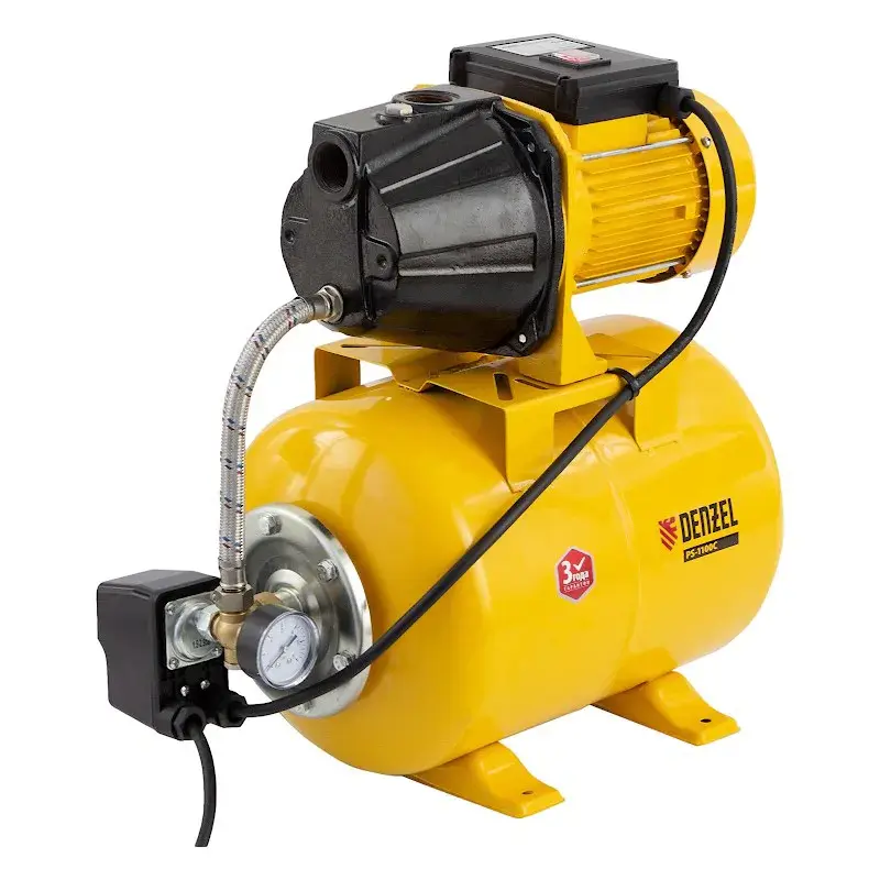 Насосная станция DENZEL PS1100С служит для бытового водоснабжения частных домов, загородных дач и приусадебных хозяйств из источников глубиной до 8 м. Работает в автоматическом режиме от сети с напряжением 220 В. Оборудование производительностью 4500 л/ч способно обеспечить подачу воды одновременно в несколько точек забора, например: на кухню, в баню и систему полива. Максимальное давление составляет 4,6 бар.