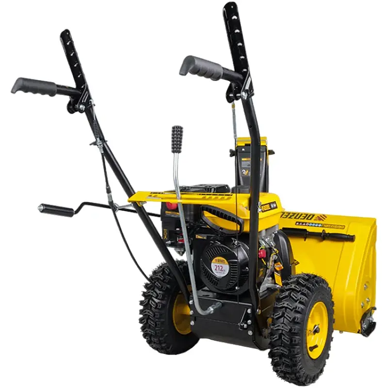 Модель оборудована стальным шнеком с острыми зубьями. За счет этого техника справляется с измельчением плотных комков слежавшегося или даже заледеневшего снега.