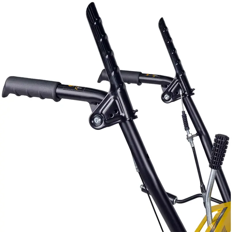 На выбор есть несколько скоростей передвижения: 5 передних и 2 задние. Начинать работу следует с самой медленной. Скорость необходимо прибавлять постепенно, с учетом ровности участка, высоты и плотности снега, а также ваших предпочтений. Задний ход позволит разворачивать модель в узких местах, а также облегчит парковку.