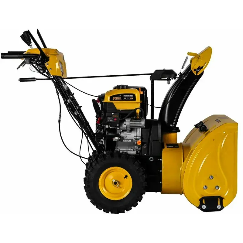 В самоходной снегоуборочной машине Denzel SBL 711D PRO предусмотрена двусторонняя разблокировка дифференциала. Функция позволяет колесам вращаться с разной скоростью, что удобно при разворачивании модели. Это также позволит вытащить застрявший в яме агрегат при пробуксовке.
