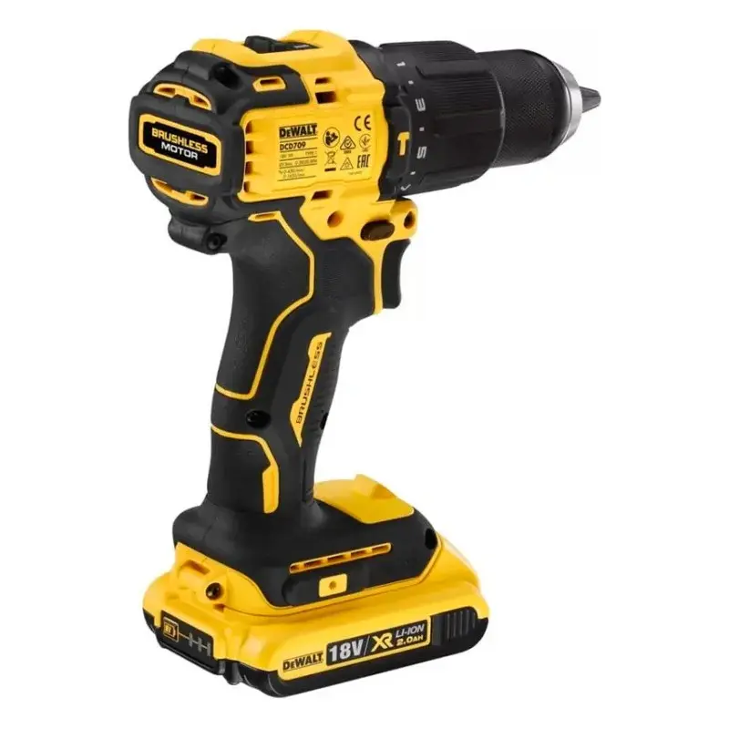 Металлический быстрозажимной патрон DeWalt DCD709D2T позволяет вам без усилий проводить замену оснастки, не используя при этом дополнительных специальных инструментов.