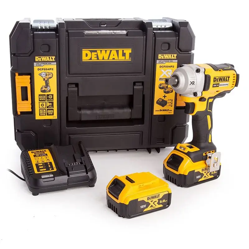 Аккумуляторный гайковерт DeWalt 18.0 В XR DCF894P2 обладает максимальным крутящим моментом 447 Нм, что позволяет крепко закручивать винты. Поставляется упакованным в чемодан, в комплекте с 2 батареями и скобой для ношения на ремне.