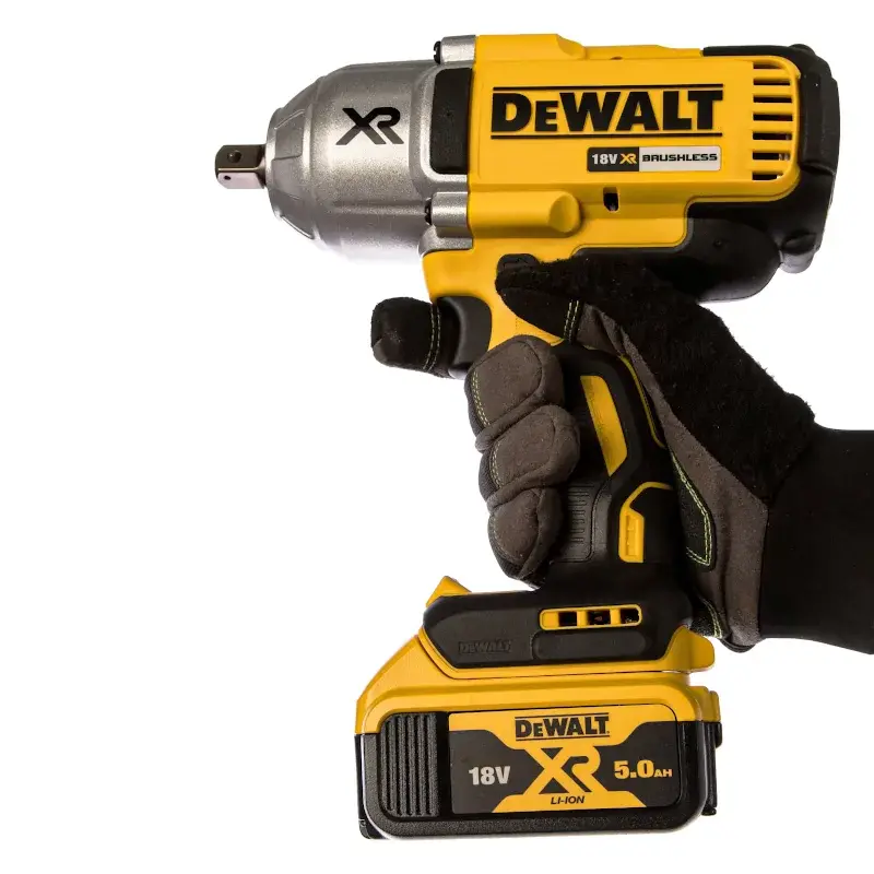 Прорезиненная рукоятка бесщеточного гайковерта DeWALT DCF899P2 обеспечивает крепкий хват. Такой материал не будет скользить в руке.