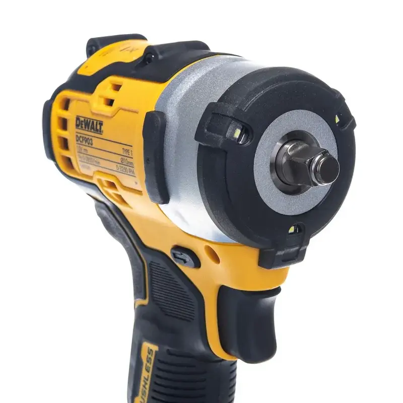 Импульсный гайковерт DeWALT DCF903P1-QW служит для завинчивания и отвинчивания крепежных элементов. Благодаря тангенциальному удару и высокому крутящему моменту до 339 Нм инструмент прекрасно справляется даже с самыми туго закрученными гайками и не требует приложения больших усилий во время использования. Работает от входящего в комплект Li-Ion аккумулятора 12 В емкостью 5 Ач, который подходит к другим аккумуляторным инструментам производителя. В гайковерте используется патрон типа «квадрат» с фрикционным кольцом размером 3/8 ".