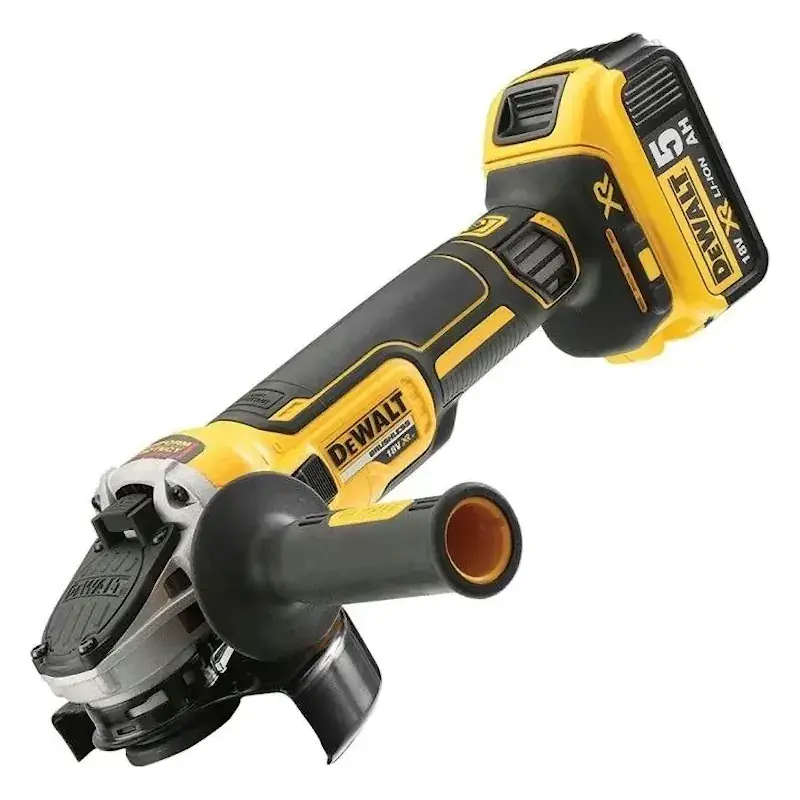 Аккумуляторная угловая шлифмашина DeWalt DCG405P2 имеет компактный и легкий корпус с прорезиненным покрытием, благодаря чему удобно лежит в руке. Дополнительную рукоять можно установить слева или справа в зависимости от задачи и потребностей пользователя.