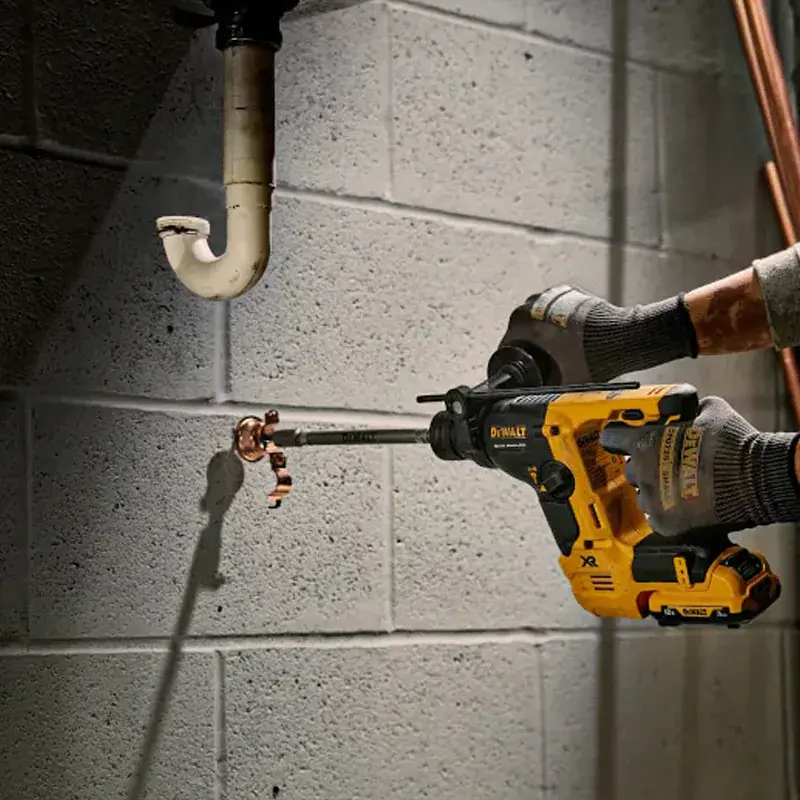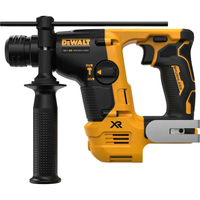 - Прорезиненная задняя рукоятка обеспечивает надёжный и удобный хват Dewalt 12 В XR SDS-Plus DCH072N-XJ
