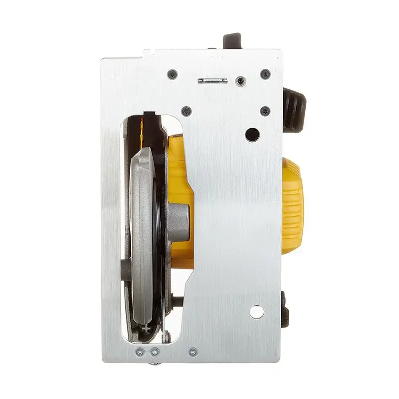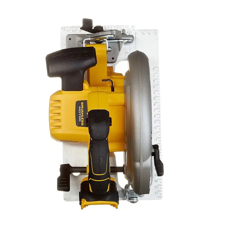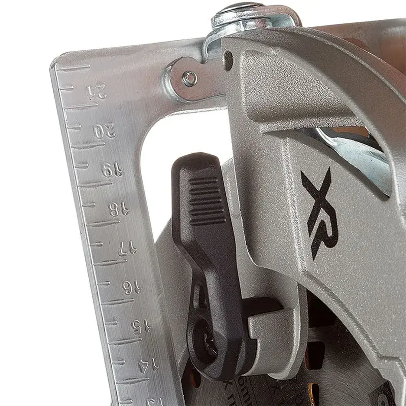Индикаторная шкала в передней части подошвы помогает точно выполнять вертикальные и наклонные резы. Отметки, нанесенные на боковую сторону основания, показывают длину выпиливаемого паза. Светодиодная подсветка ярко освещает линию пропила. Лампа автоматически загорается при нажатии на пусковой выключатель и гаснет через 20 секунд после его отпускания. Дисковая пила DeWalt DCS570N имеет адаптер, позволяющий подключить строительный пылесос для удаления пыли и отходов пиления.