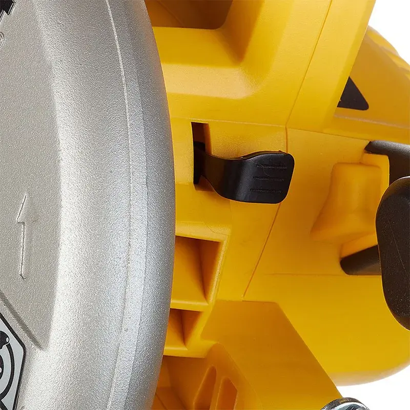 В целях безопасности пильный диск закрыт сверху и снизу стальными кожухами. Нижний подпружиненный подвижный кожух прикрывает острое лезвие и сдвигается только во время пиления. Кнопка блокировки предохраняет от случайного включения. Циркулярную пилу DeWalt удобно удерживать благодаря нескользящим рукояткам. Резиновые вставки снижают вибрацию. Глубина пропила и угол наклона опорной подошвы легко регулируются. Под прямым углом можно выполнять пропилы до 64 мм.