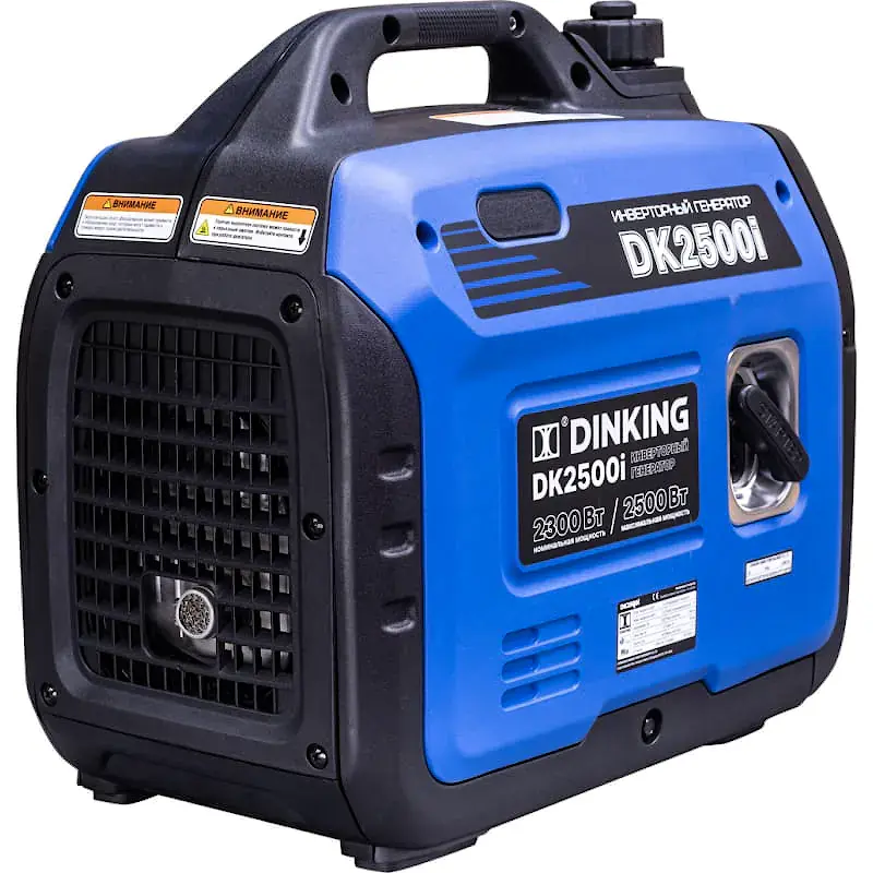 Инверторный генератор Dinking DK2500i в шумозащитном кожухе с ручкой для переноски весит всего 18 кг, удобен для перевозки в багажнике автомобиля, поездок на дачу, рыбалку или пикник. Мини электростанция обеспечивает автономное питание техники, инструментов и гаджетов с максимальной общей потребляемой мощностью 2,5 кВт. Генератор работает от четырехтактного бензинового двигателя с воздушным охлаждением и ручным стартером.