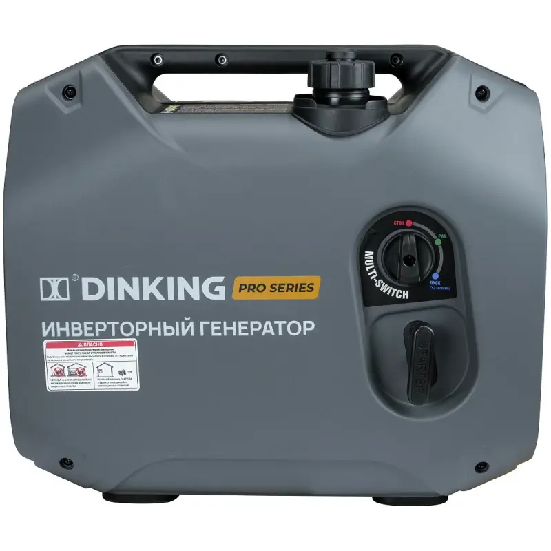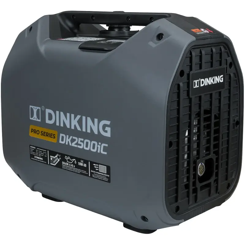 Генератор Dinking DK2500iC имеет закрытый пластиковый кожух и широкую ручку, весит всего 19,5 кг, за счет чего удобен для переноски. Уровень шума составляет 60 Дб, что значительно ниже, чем у обычных бензогенераторов.