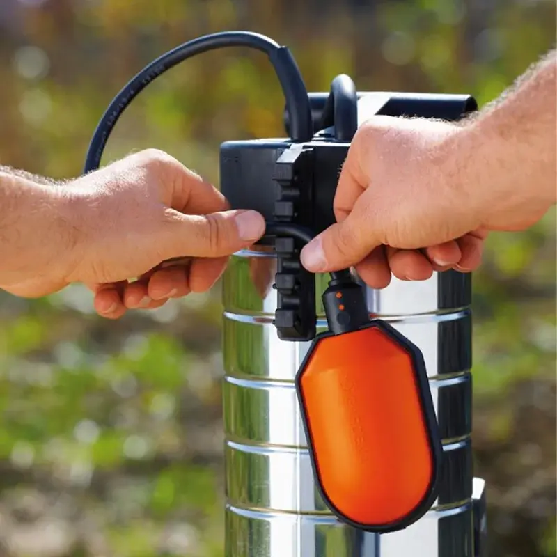 Поплавковый выключатель обеспечивает автоматическое включение и выключение насоса. Изменяя положение кабеля в фиксаторе, можно регулировать уровни включения и выключения с помощью поплавкового выключателя. Дополнительно подключаемый механизм позволяет при необходимости легко перейти на постоянное ручное управление. Благодаря наличию силового кабеля длиной 10 м, практичный и надежный шланг может использоваться для выполнения различных задач даже на очень большой глубине.