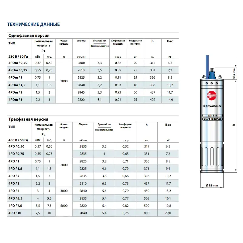 В однофазной версии 4SR-PD конденсатор находится внутри тары.