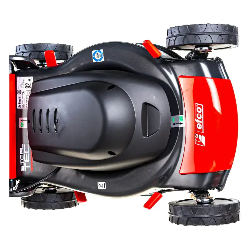 Электрическая газонокосилка EFCO LR 44 PE Comfort Plus предназначена для кошения дачных и приусадебных участков. Мощность электродвигателя LR44PE составляет 1,5 кВт, а ширина захвата стрижки – 41 см. Отсутствие щеточно-коллекторного узла значительно продлевает срок службы двигателя. Дека косилки выполнена из высокопрочного стали. Травосборник электрокосилки EFCO LR 44PE вмещает 60 литров. Регулировать высоту кошения травы можно индивидуально для каждого колеса и фиксировать в диапазоне от 28 до 75 мм. Вес самой косилки всего 21 кг. На LR44 PE Comfort Plus не предусмотрен ни боковой выброс, ни функция мульчирования.