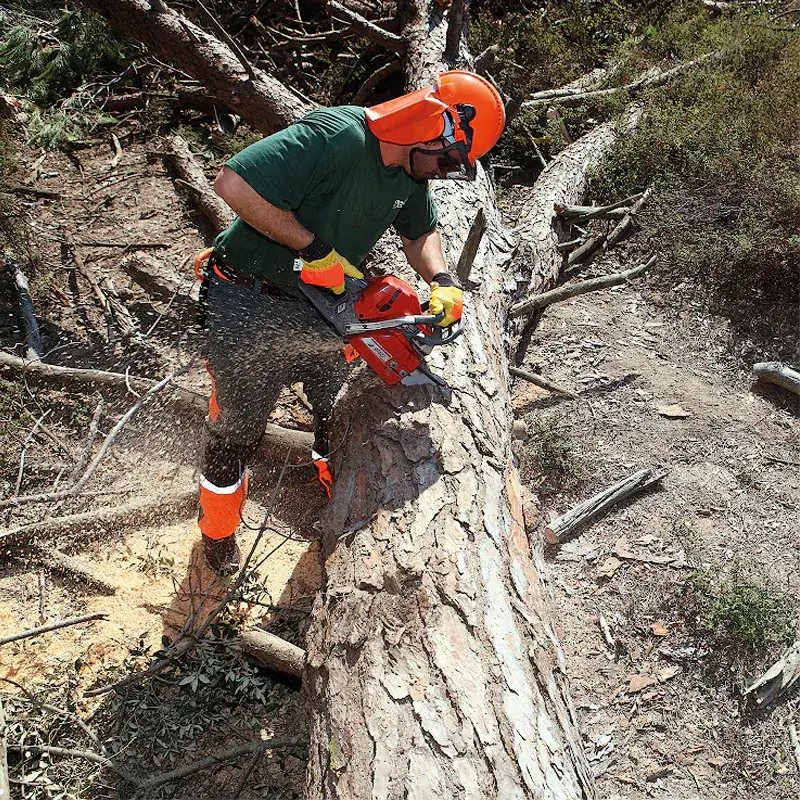 Две рукоятки и сбалансированная конструкция делают эксплуатацию пилы удобнее, обеспечивают надежный хват и уверенный контроль над инструментом. Сравнительно небольшой вес облегчает работу с пилой. Вы можете очистить воздушный фильтр, а при необходимости и заменить его. Быстрый доступ к свече зажигания и топливному фильтру упрощает техническое обслуживание.