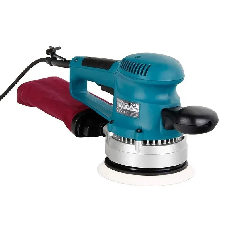 Эксцентриковая шлифмашина Makita BO6030 с двигателем мощностью 310 Вт предназначена для сухой полировки древесины, металлических, лакированных поверхностей. Большой тарельчатый круг диаметром 150 мм позволяет быстро обрабатывать материал.