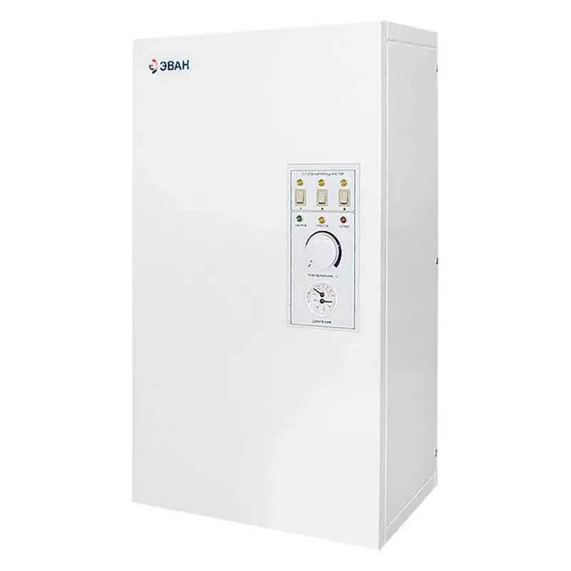 Температура настраивается поворотным регулятором рядом с тумблерами электрокотла ЭВАН ЭПО-1М-7.5 Warmos-M. Система автоматически поддерживает заданное значение, самостоятельно включая и выключая обогрев. Технология также позволяет экономить энергию.
