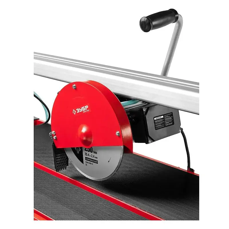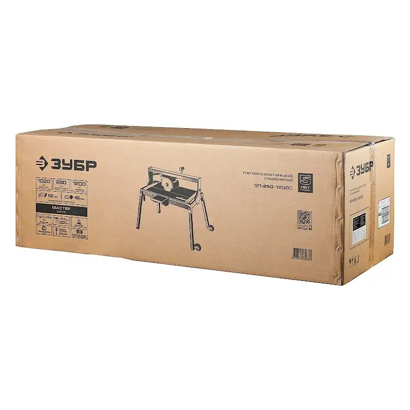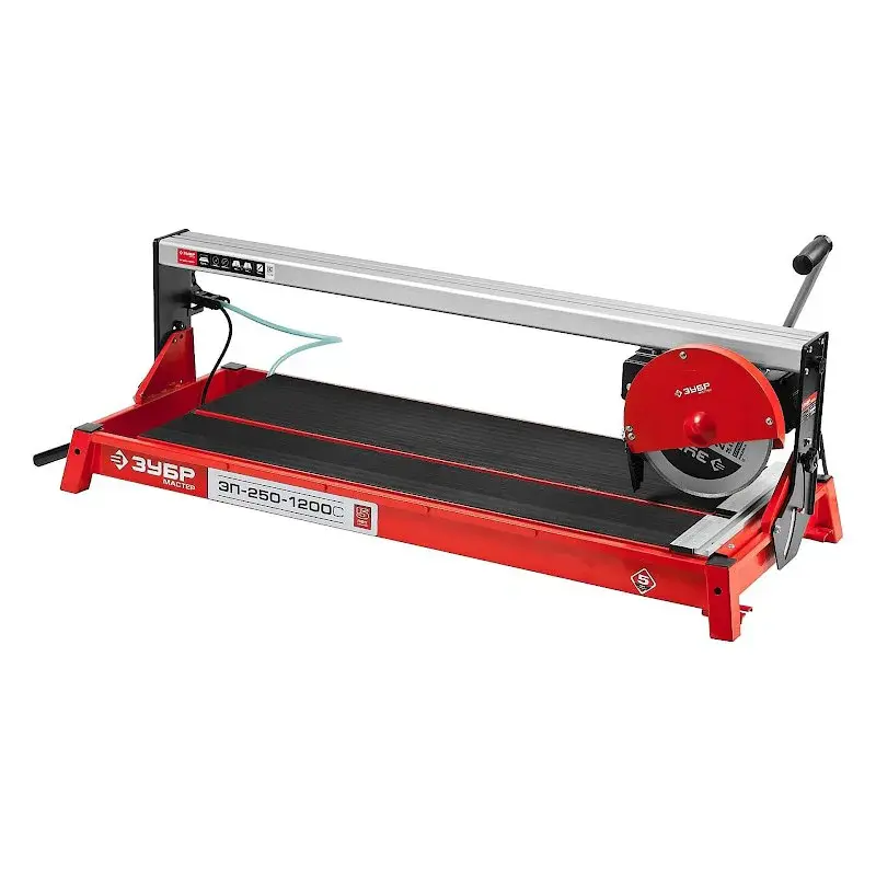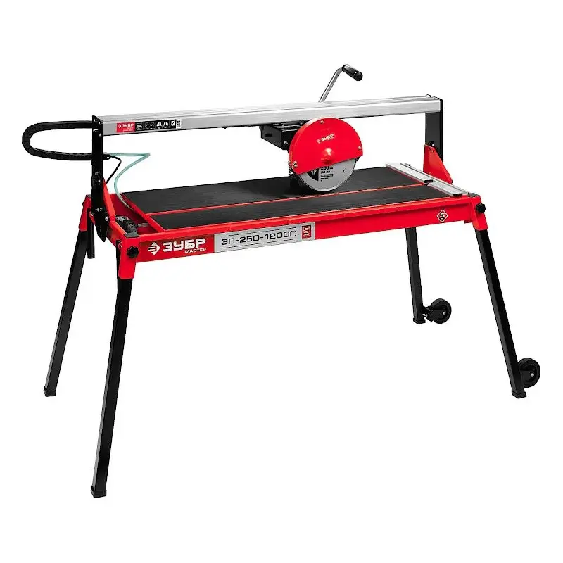Плиткорез Зубр ЭП-250-1200С обеспечивает чистый рез керамики и натурального камня за счет асинхронного двигателя мощностью 1200 Вт. Инструмент установлен на станину для удобства использования, а также совместим с баком водяного охлаждения.