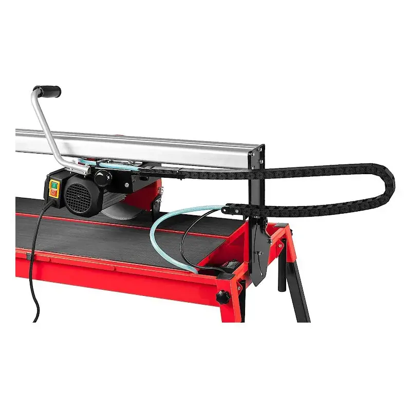 Алмазный диск диаметром 250 мм позволяет резать материалы на глубину до 46 мм под углом 45 ° и до 52 мм под углом 90 °. Длина пропила составляет 1020 мм, благодаря чему вы можете обрабатывать большие плитки, включая тротуарные и облицовочные.