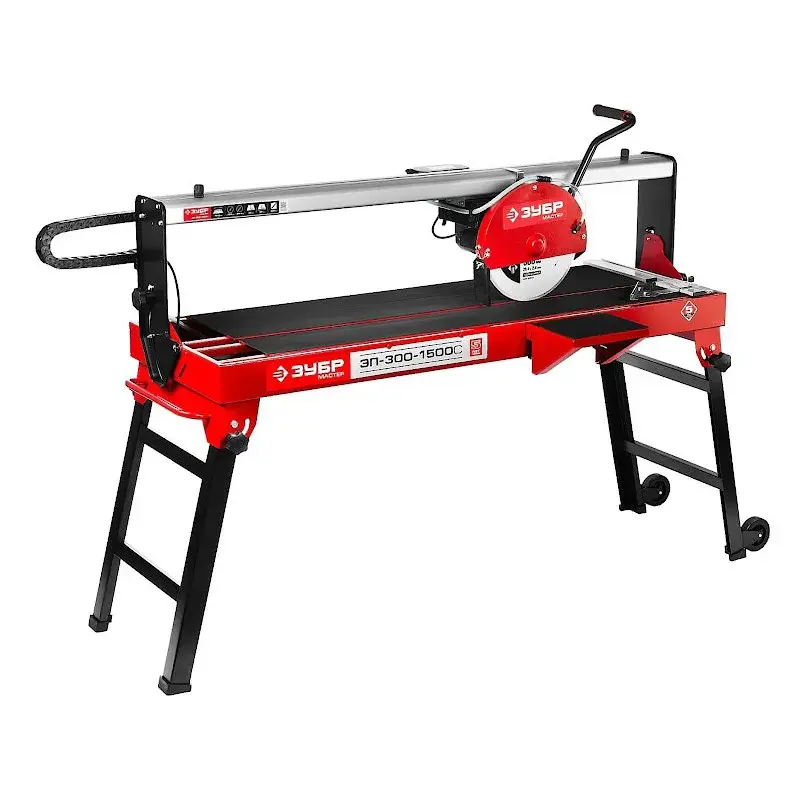 Плиткорез Зубр ЭП-300-1500С обеспечивает чистую обработку керамики и натурального камня за счет асинхронного двигателя мощностью 1500 Вт. Инструмент установлен на станину для удобства использования, а также совместим с баком водяного охлаждения.