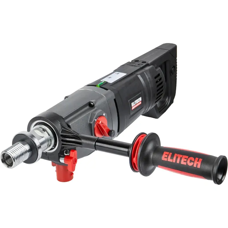 Дрель для алмазного сверления ELITECH HD HCD 1916E предназначена для получения отверстий в армированном и обычно бетоне, аналогичных по свойствам строительных материалах (кирпич, асфальт и прочее), горных породах, а также отбора керна. Дрель имеет патрубок для подключения пылесоса и реализует «сухой» способ сверления.