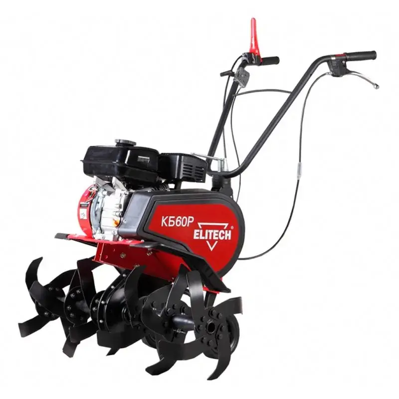 Мотокультиватор Elitech КБ 60Р используется для вспахивания почвы на участках до 1500 м2. Инструмент оснащен двигателем мощностью 4800 Вт и металлическими фрезами, которые позволяют эффективно рыхлить слой земли глубиной до 33 см.