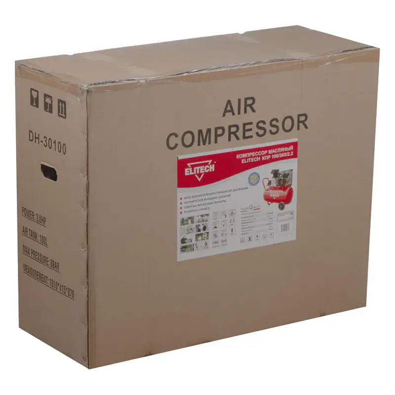 Компрессор ELITECH КПР 100/360/2.2 обладает производительностью 320 л/мин, а потому позволяет работать с различными пневматическими инструментами: шлифовальной машиной, заклепочником, степлером, краскопультом и т.д. Модель оснащена ресивером объемом 100 л. Компрессор станет незаменимым помощником в гараже или автомастерской.