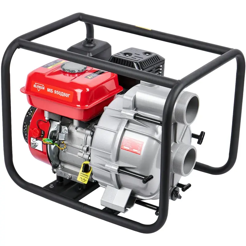 Мотопомпа МБ 950Д80Г с 4-х тактным бензиновым двигателем и ручным стартером производительностью 950 л/мин. применяется для перекачивания загрязненной воды с диаметром частиц до 22 мм. Металлическое рабочее колесо. Максимальный напор до 25 метров.