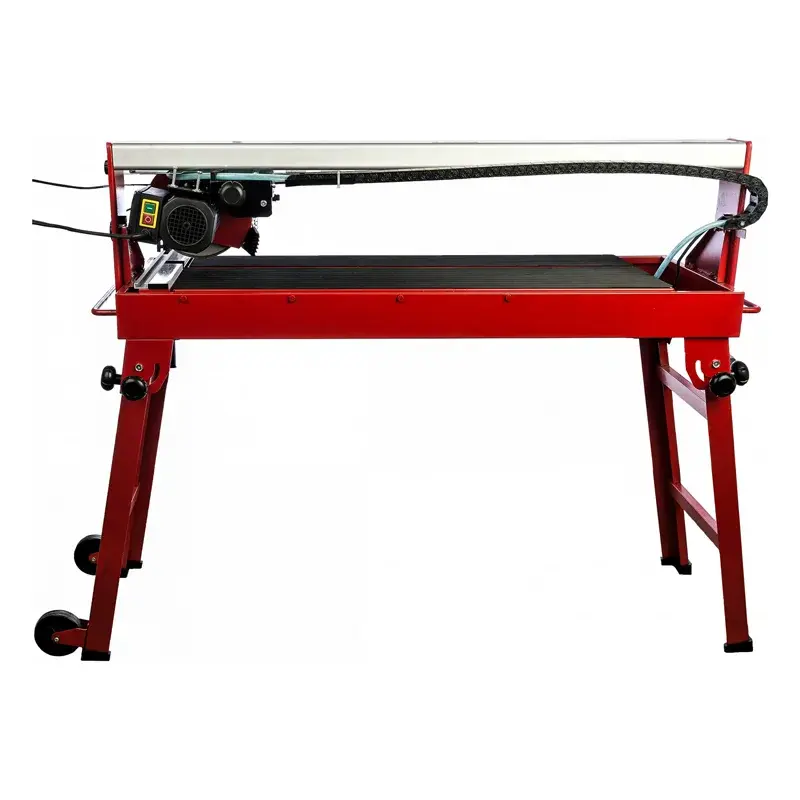 Стол изготовлен из стали, что делает конструкцию прочной. При этом он оснащен резиновым ковриком, который препятствует скольжению заготовки. В конструкции плиткорезного станка ELITECH ПЭ 1000/92Р предусмотрен поддон для воды и насос. Мокрая резка минимизирует количество пыли, которое поднимается в воздух при резке, а также охлаждает алмазный диск, продлевая срок его службы. Всё это также положительно влияет на качество реза, позволяя создавать ровные и точные пропилы.