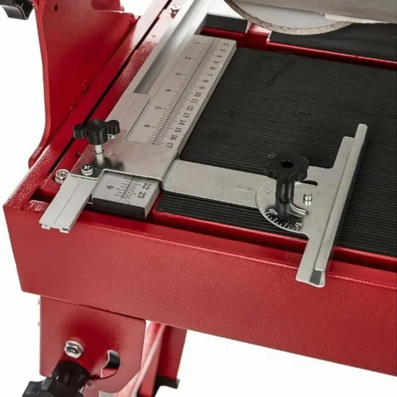 Электрический плиткорез ELITECH ПЭ 800/62Р поставляется в комплекте с алмазным отрезным диском диаметром 200 мм, который обеспечивает максимальную глубину пропила под прямым углом – 36 мм. Складные опоры обеспечивают как настольный, так и напольный монтаж модели. Для простого перемещения оборудования по помещению предусмотрено два транспортировочных колеса.