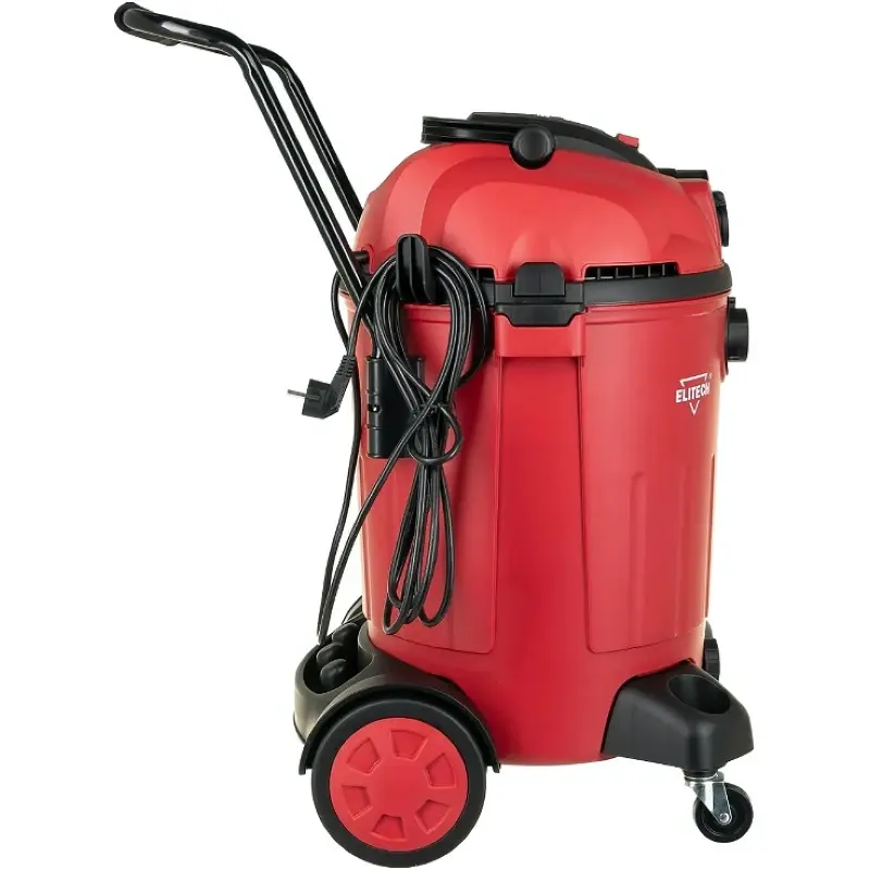 Строительный пылесос ELITECH ПС 1260А мощностью 1200 Вт с объемом контейнера 60 литров предназначен для уборки в помещениях: сбора древесной стружки и опилок, пыли, легких фракций строительного мусора, образовавшегося при работе ручных и электрических машин (сухая уборка) и сбора воды с поверхности пола (влажная уборка), а также для совместного использования с электроинструментом при принудительном удалении продуктов строгания, пиления и т.д.