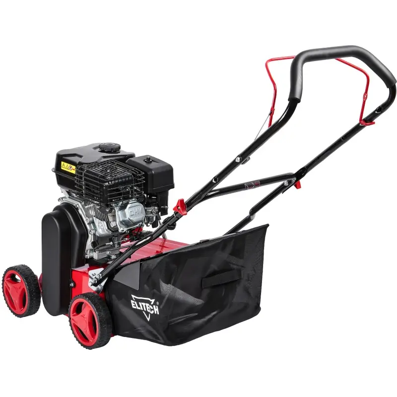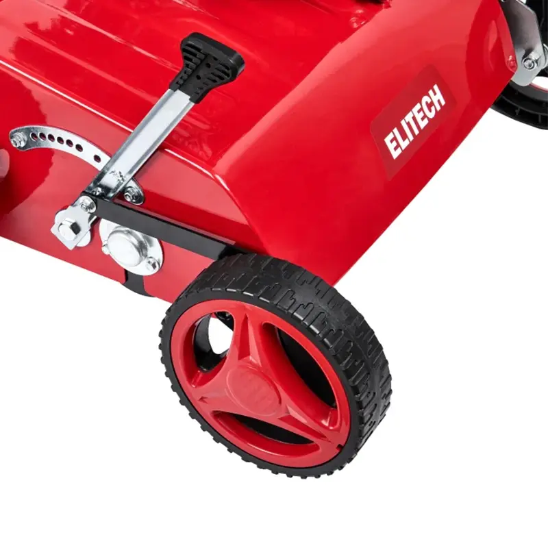 Скарификатор ELITECH СБ 4340Т с бензиновым 4-х тактным двигателем DUCAR с двойной фильтрацией воздуха, мощностью 5,9 л.с. и шириной обработки 400 мм предназначен для ухода за газоном методом механического вычёсывания с поверхности дёрна, мха и соломы, которые препятствуют росту травы. Большие колёса (200мм – передние, 165мм – задние) на шарикоподшипниках обеспечивают отличную маневренность. Удобная ручка над двигателем и сбалансированная конструкция позволяет без труда перемещать и транспортировать агрегат. Скарификатор имеет широкий диапазон регулировок величины заглубления (от -20мм до +5 мм, 8 позиций) и удобный рычаг для быстро перевода рабочего органа в требуемое положение. Для подбора удаленного с поверхности мусора модель оснащена мусоросборником объёмом 35л.