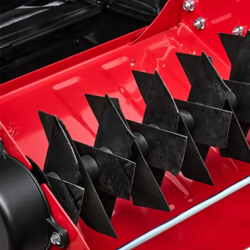 В стандартную комплектацию модели входят две сменные насадки: металлические ножи и пружинные грабли. Металлические ножи – основной для использования аксессуар. Ими «вычёсывают» поверхность, удаляя солому и мох, а при небольшом заглублении в почву – они надрывают сплетения корневой системы травы, работая, как скальпель. И каждый «повреждённый» корень даёт новый росток, за счёт чего газонная трава становится гуще. Насадку «пружинные грабли» применяют, когда газонная трава молодая или почва обильно насыщена влагой.