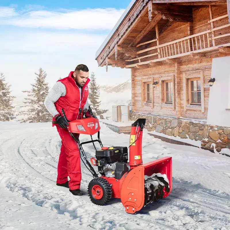Бензиновая снегоуборочная машина Elitech СМ 14Э (Е1609.007.00) - самоходный агрегат, оснащенный мощным двигателем LONCIN LC190FDS, специально адаптированным для зимней эксплуатации.