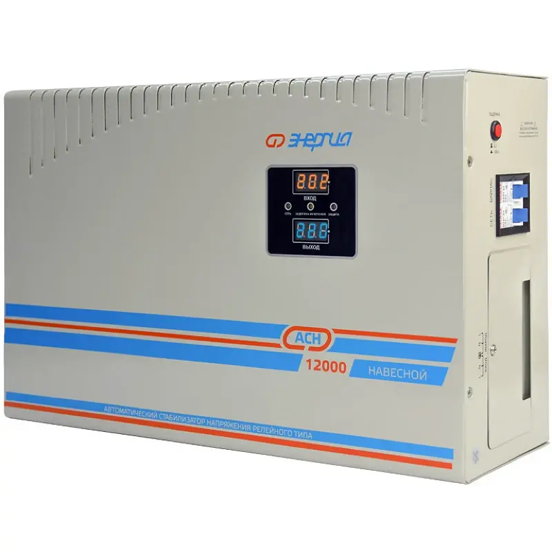 Стабилизатор Энергии АСН навесной – это улучшенный вариант стабилизаторов Энергия АСН. Благодаря плоскому корпусу и перекомпоновке внутренних узлов, стабилизатор можно повесить на стену. Стабилизатор Энергия АСН навесной – это современное бюджетное оборудование, компактность и широкий модельный ряд. Блок самотестирования и интеллектуальная программируемая защита повышают надёжность и продлевают срок службы стабилизаторов этой серии