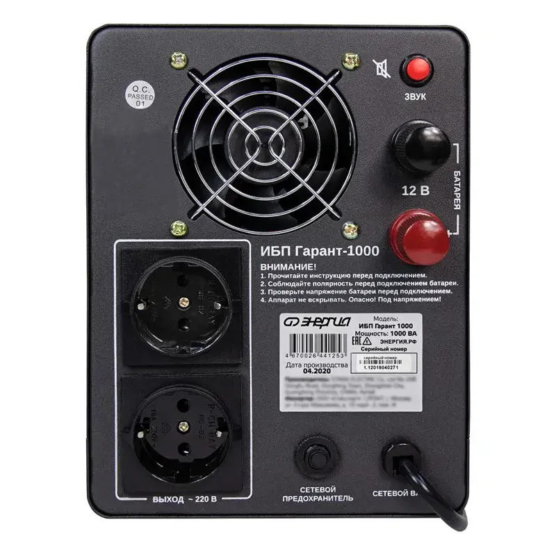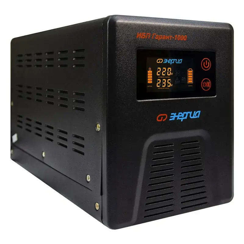 Инверторы «Энергия» серии ИБП Гарант заряжают аккумулятор в момент присутствия сети. При полном пропадании питания прибор находится в режиме преобразователя постоянного сигнала в переменный (инверторный режим). Он преобразует постоянное напряжение аккумуляторной батареи в переменное напряжение 220 Вольт, которое подается к потребителям.
