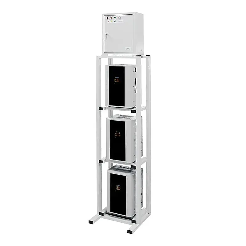 Трехфазный стабилизатор напряжения СНВТ ЭНЕРГИЯ HYBRID предназначен для стабилизации переменного напряжения в сети электроснабжения для потребителей общепромышленного, бытового и аналогичного назначения. Изделие относится к классу автотрансформаторных стабилизаторов со смешанным релейно-сервоприводным регулированием с помощью электромеханических реле и сервомотора. Изделие соответствует требованиям российских и международных стандартов. Технические условия и нормативная база на изделие устанавливаются стандартом предприятия SCT/008-2009.