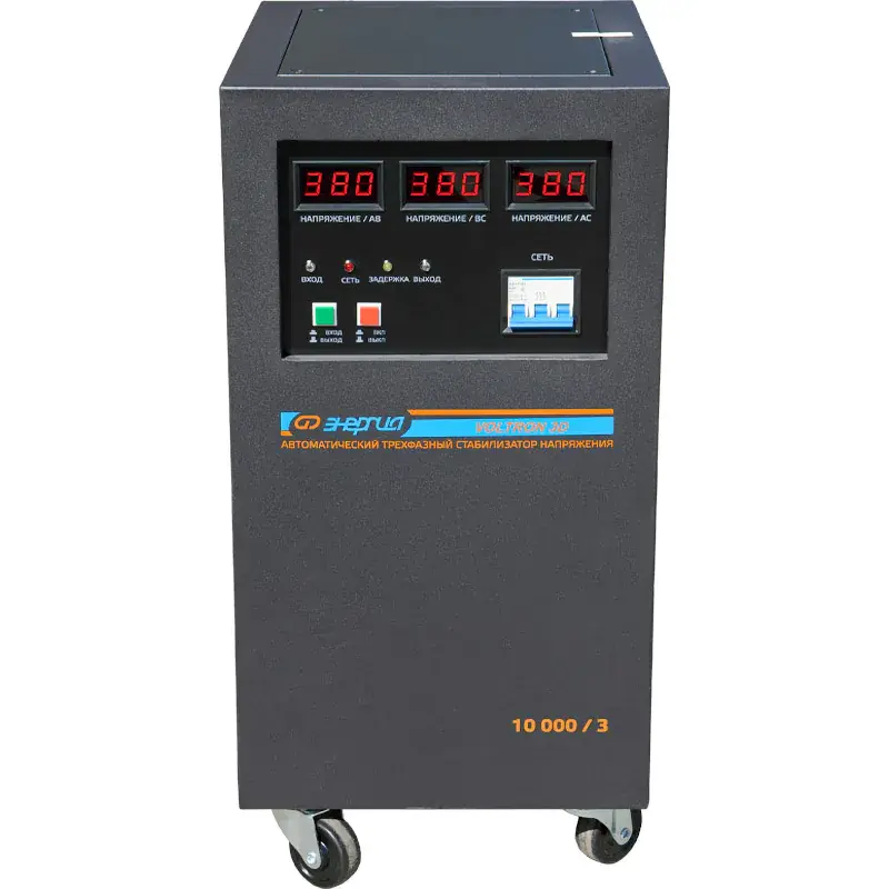 Трехфазный стабилизатор напряжения ЭНЕРГИЯ Voltron 3D 10000/3 обеспечивает подключенное оборудование качественной электрической энергией со стабильными уровнями фазного и линейного напряжения. Максимальная полная мощность нагрузки в длительном режиме составляет 10000 ВА. Благодаря электронной системе управления КПД устройства достигает 98 %. Допускается эксплуатация в температурном диапазоне от -5 до +40_С.