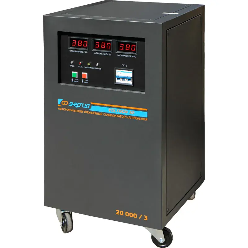 Трехфазный стабилизатор напряжения ЭНЕРГИЯ Voltron 3D 20000/3 обеспечивает подключенное оборудование качественной электрической энергией со стабильными уровнями фазного и линейного напряжения. Максимальная полная мощность нагрузки в длительном режиме составляет 20000 ВА. Благодаря электронной системе управления КПД устройства достигает 98 %. Допускается эксплуатация в температурном диапазоне от -5 до +40_С.