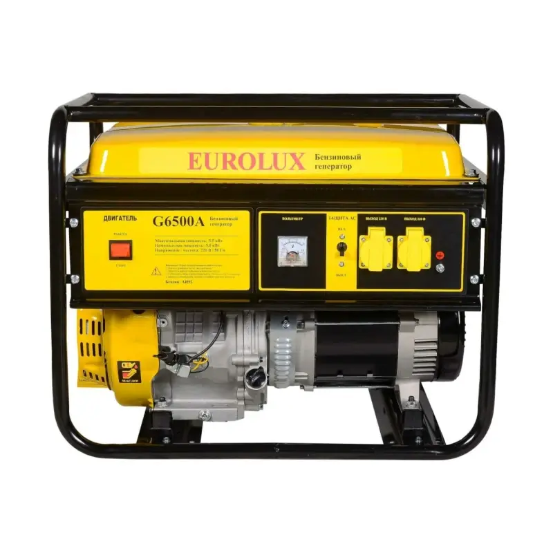 EUROLUX G6500A – передвижной бензиновый электрогенератор с ручным стартером, предназначенный для выработки электроэнергии в условиях, где невозможна ее магистральная подача. Модель рассчитана на автономное электроснабжение дач, загородных домов, строительных и эксплуатационных площадок.