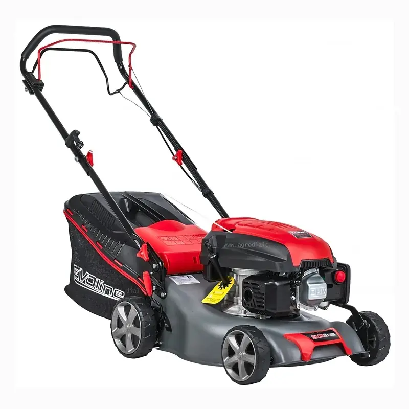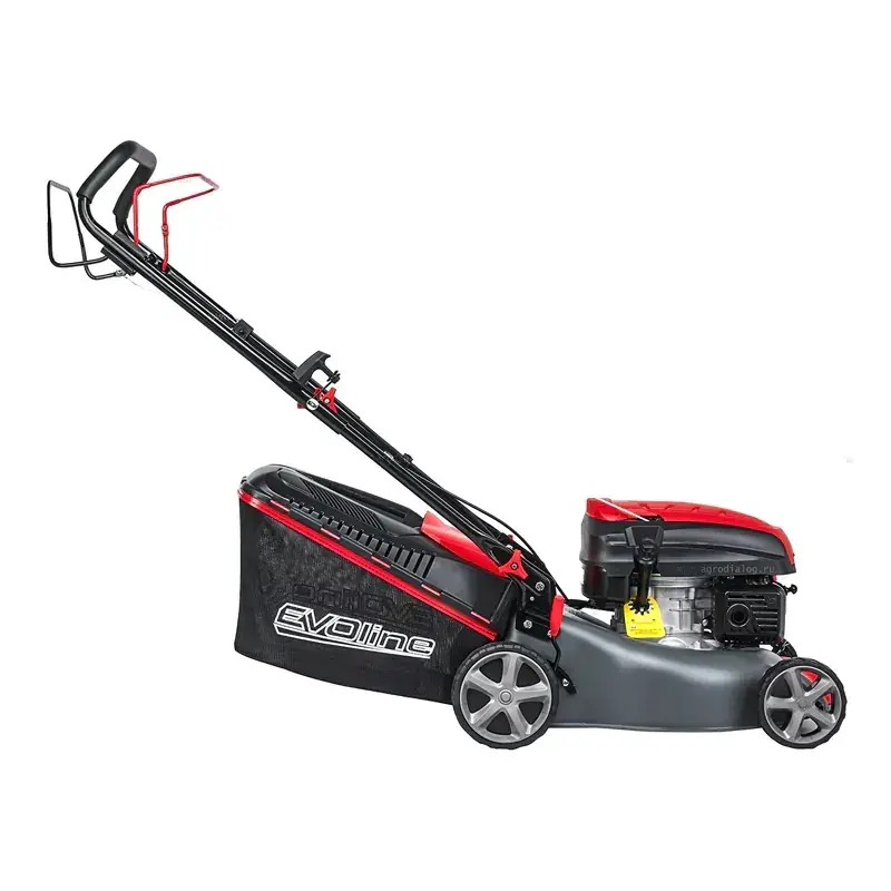 - Бензиновая газонокосилка EVOline LMG 42 CS обладает привлекательным дизайном и простотой использования, что делает её идеальным помощником в саду.