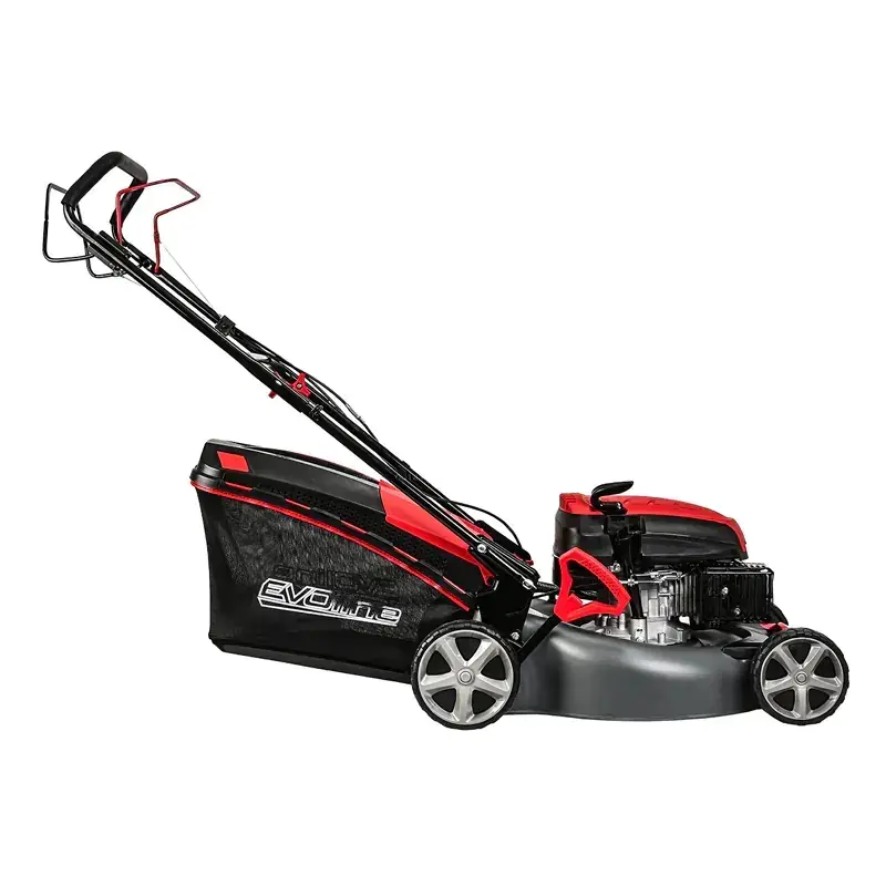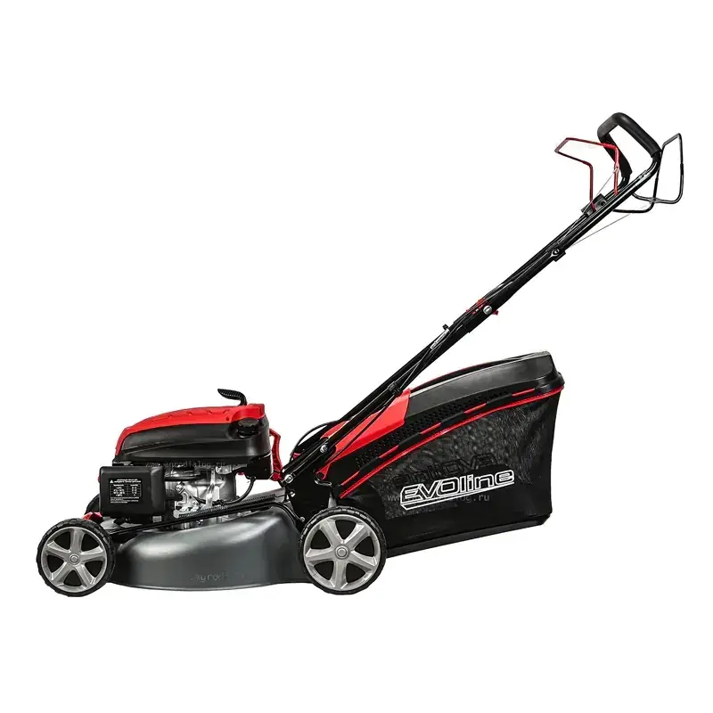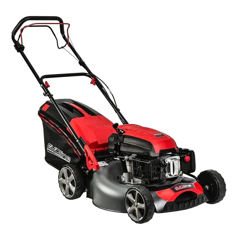 - Бензиновая газонкосилка EVOline LMG 51 CS оснащена косильным ножом повышенной прочности, со специально подобранным углом атаки режущей кромки.