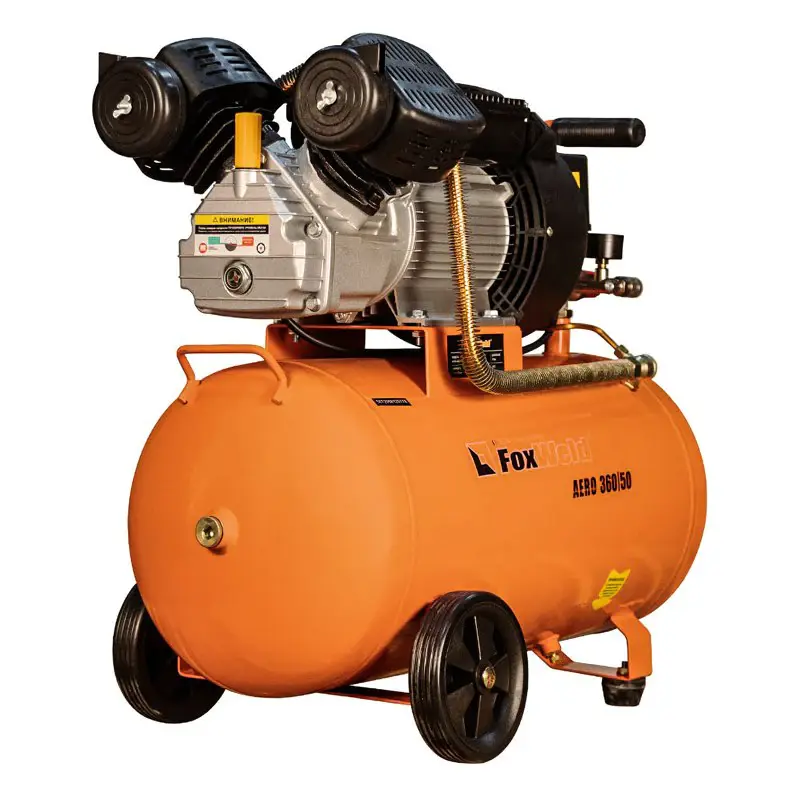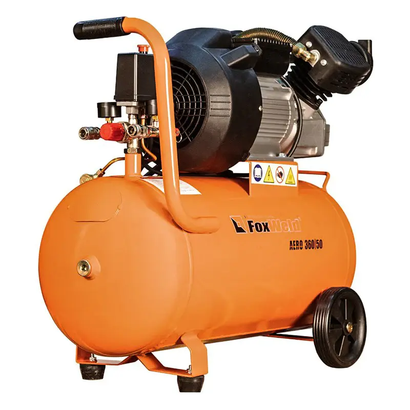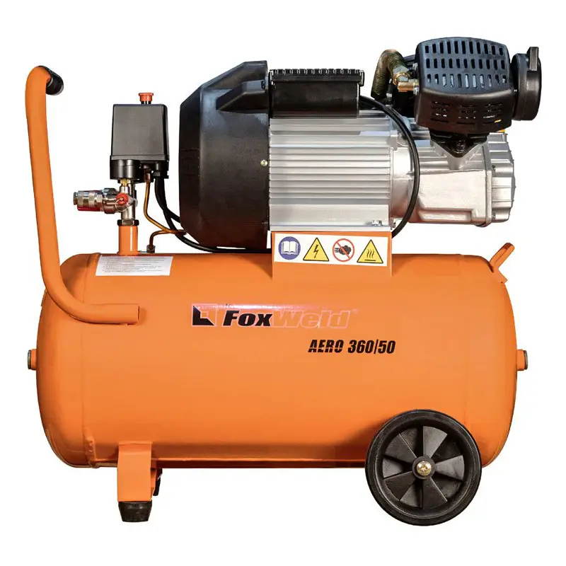 Масляный коаксиальный компрессор FoxWeld AERO 360/50 с ресивером объемом 50 л используется для сервисных, ремонтных, монтажных работ дома, на даче, в гараже на стройке с такими потребителями сжатого воздуха, как: краскопульты, пистолеты для продувки и подкачки, пневмодрели и с другим пневмооборудованием. Прибор нагнетает в ресивер объемом 50 л давление до 8 бар со скоростью до 360 л/мин повышает эффективность выполняемых работ.