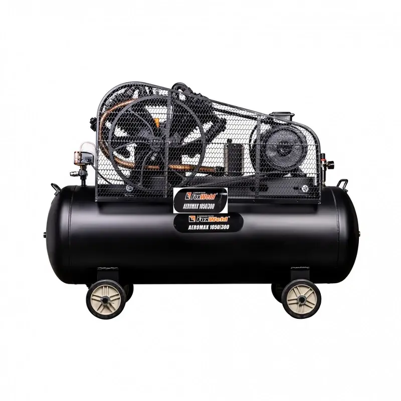 Масляный ременной компрессор FoxWeld AEROMAX 1050/300 используется для сжатия атмосферного воздуха и подачи в качестве энергоносителя для пневмоприводов и пневмооборудования. Профессиональный прибор с производительностью 1050 л/мин и давлением до 12,5 бар применяется во время строительных и автослесарных работ, в производственных цехах и шиномонтажных мастерских.