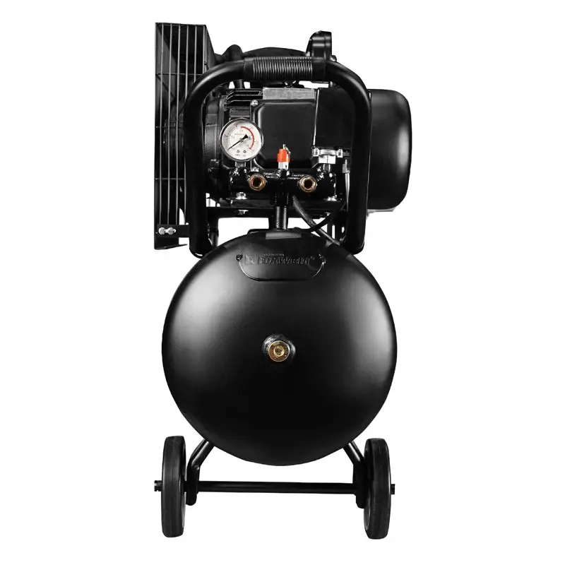 Воздух, поступающий к нагнетательной головке, очищается от загрязнений с помощью многоразовых сменных фильтров. Смазка уменьшает износ элементов поршневого механизма. Система термозащиты предотвращает перегрев двигателя. Уровень масла в картере удобно отслеживать через смотровое окно. Полимерное покрытие защищает ресивер от коррозии, для слива конденсата предусмотрена пробка.