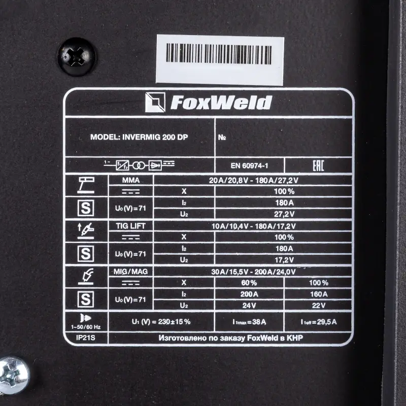 Сварочный полуавтомат FoxWeld INVERMIG 200 DP относится к оборудованию профессионального класса, которое позволяет производить сварку конструкций из углеродистой и нержавеющей стали, алюминиевых и медных сплавов. Аппарат работает от сети с напряжением 230 В и поддерживает три основных метода: MIG/MAG и TIG Lift в импульсном и обычном режимах, а также дуговую сварку штучными электродами — ММА. Настройка сварочного процесса не занимает много времени благодаря наличию синергетической функции и кнопочной панели с ЖК-дисплеем. Ток сварки регулируется в диапазоне 10–200 А. Максимальный диаметр покрытого электрода и проволоки составляет 4 и 1 мм, соответственно. Благодаря функции VRD с оборудованием можно работать при повышенной влажности. Инверторная технология обеспечивает стабильную дугу, а импульсные режимы повышают производительность и качество сварки.