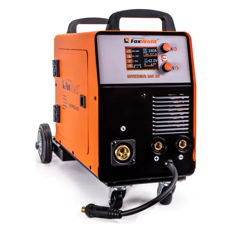 Сварочный полуавтомат FoxWeld INVERMIG 240 DP является уникальным устройством, воплотившем в себе очень большое количество функций и опций, которые позволяют профессионально и качественно, осуществлять процесс сварки в различных режимах и с разными настройками. Основная функция модели сварка процессом MIG/MAG: максимальная сила тока в 240 Ампер позволяет работать с проволокой диаметром до 1,2 мм. В механизм подачи проволоки можно установить катушки диаметрами, как D100, так и D200.
